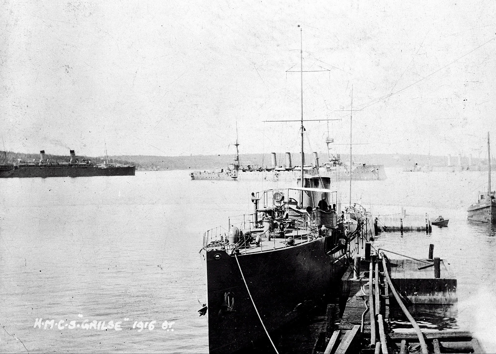 Built by Yarrow & Co., Glasgow, Scotland, HMCS GRILSE was the Royal Canadian Navy's closest ship to a destroyer during the First World War. In Jun 1915, millionaire Jack Ross purchased the Winchester, one of the fastest civilian yachts in existence, from the United States and brought it to Canada. Commissioned as HMCS GRILSE in Jul 1915, and with Ross in command, the ship was refitted and armed at the Canadian Vickers shipyard in Montreal before sailing to Halifax to start carrying out patrols. Easily the fastest ship in the Royal Canadian Navy (RCN), GRILSE could reach speeds of more than 30 knots (55 km/h). Since she was unsuited for winter service in Canadian waters, GRILSE left Halifax on 11 Dec 1916, for the Caribbean and was reported lost in a storm. She turned up at Shelburne, N.S. three days later, however, having lost 6 men who were washed overboard during the storm. After several months' refit GRILSE resumed her patrol duties until she was paid off on 10 Dec 1918. An effort was made to sell her in 1920, but no adequate bid was received, and during 1921-22 she was attached to a youth training establishment in Halifax dockyard. In 1922 she was sold to Solomon Guggenheim, who renamed her Trillora, and was still in his possession when, on 21 Sep 1938, she foundered at her jetty, in a hurricane at Roslyn, Long Island Sound.