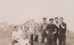 (JNC085 - JNC086) Sailors ashore at an unknown location. It is not known if they are off HMCS HAMILTON I24 or HMCS BITTERSWEET K182 From the collection of James Cox, Acting Stoker Petty Officer, RCNVR Courtesy of Evan Rogers