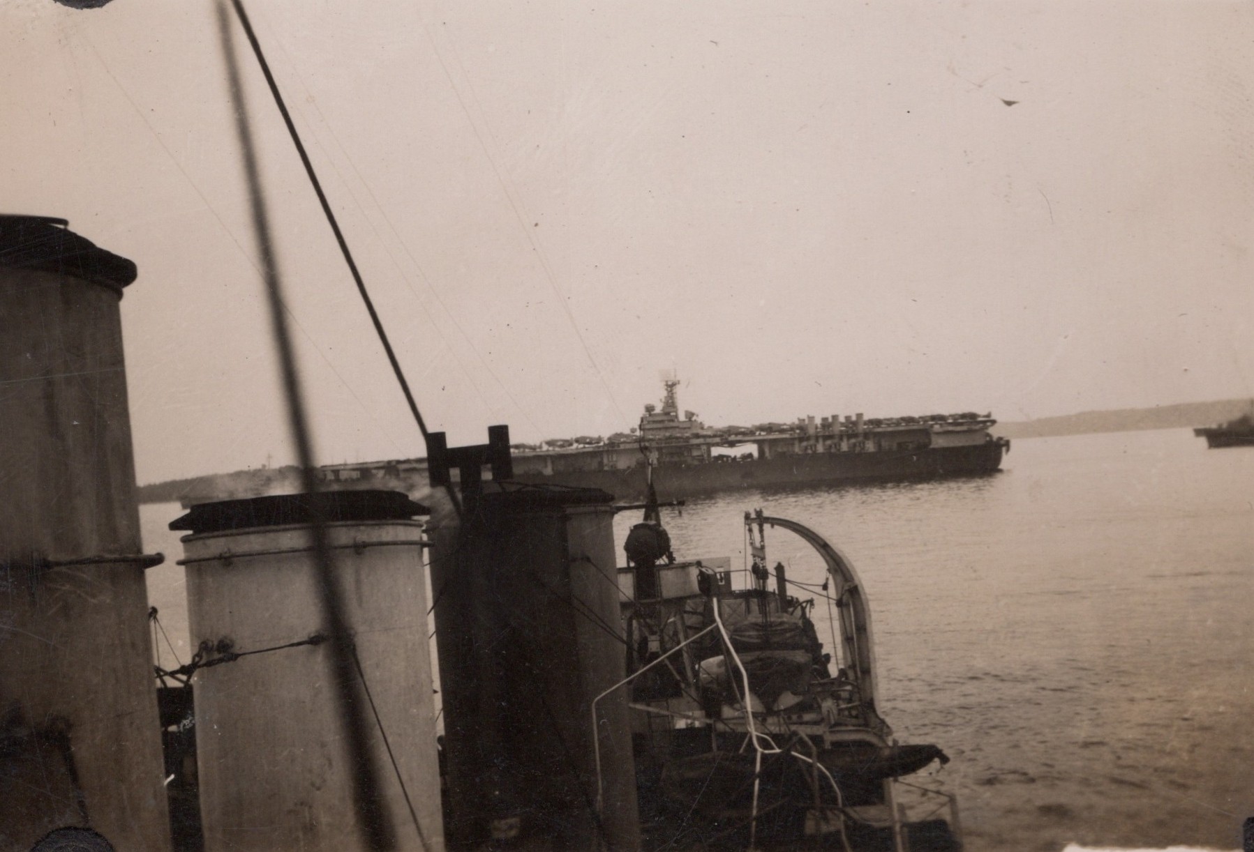 (JNC054 - JNC055) Unknown American aircraft carrier with her destroyer escorts. Photos believed to have been taken in Halifax Harbour.