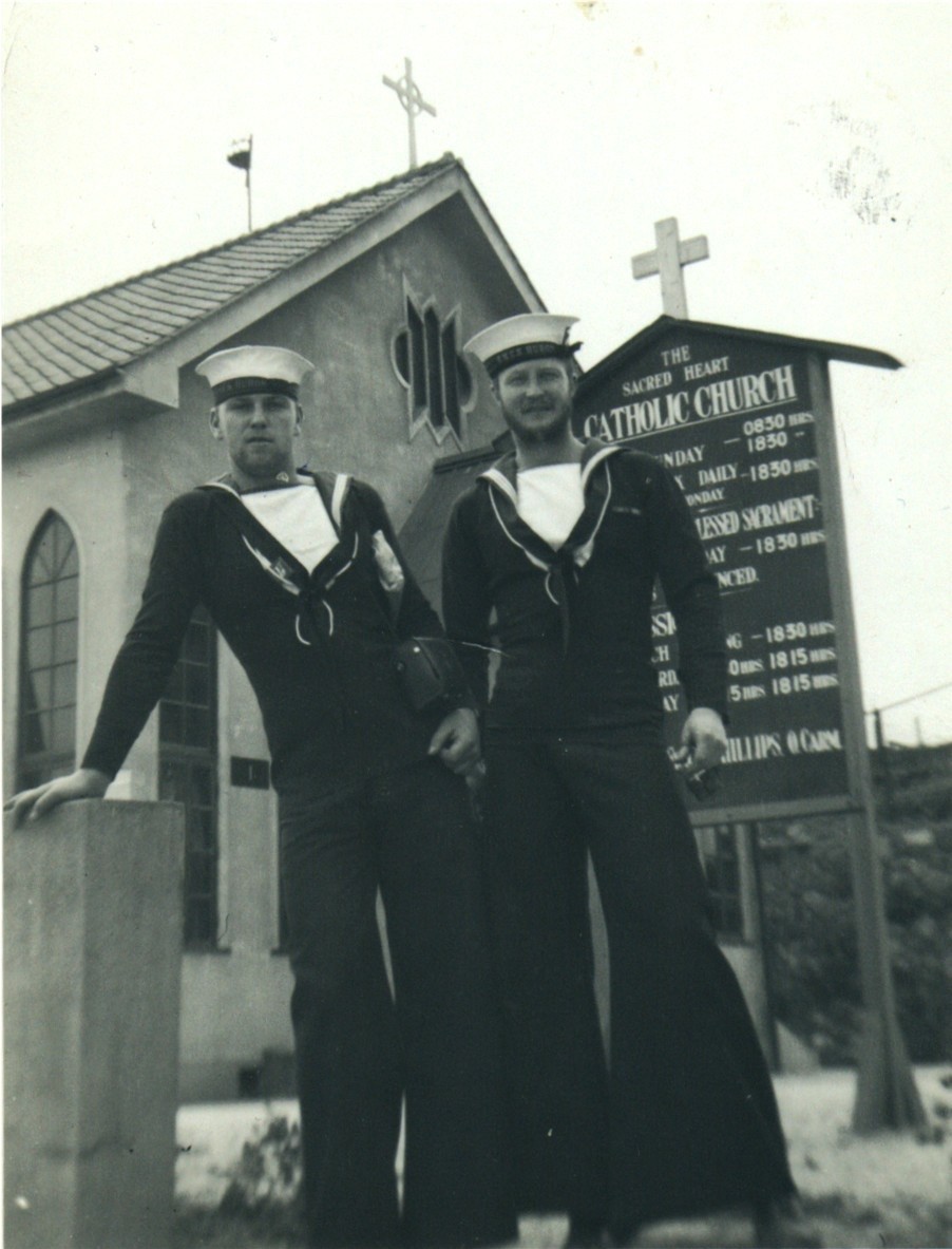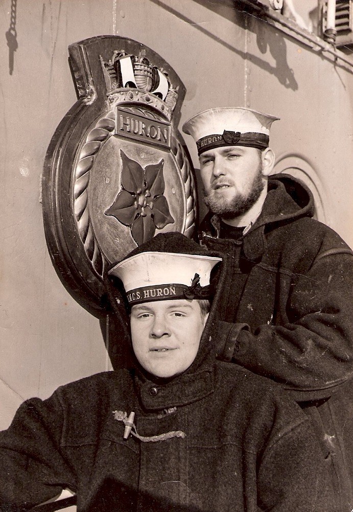 HMCS HURON 216 sailors ashore - location unknown (EA25) Earle Anderson on right (EA27) Earle Anderson onboard HMCS HURON 216