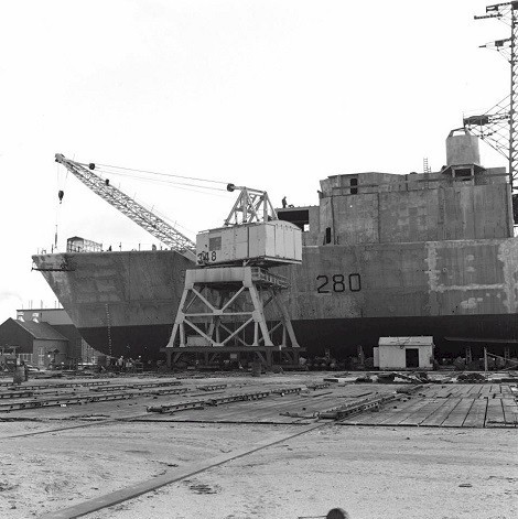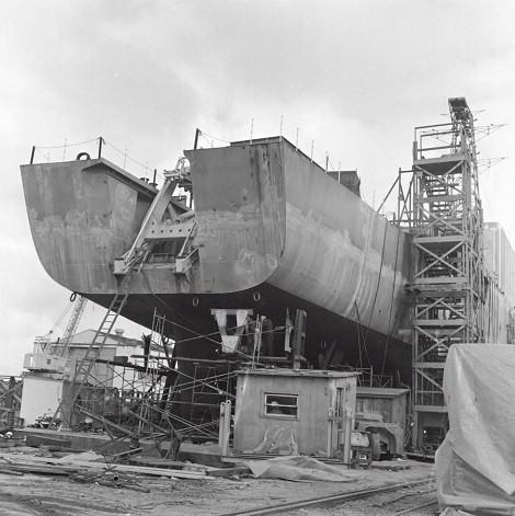 (IRO004 - IRO007) HMCS IROQUOIS 280 under construction at Marine Industries Ltd., Sorel, Que // DND Photos