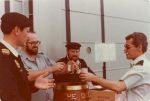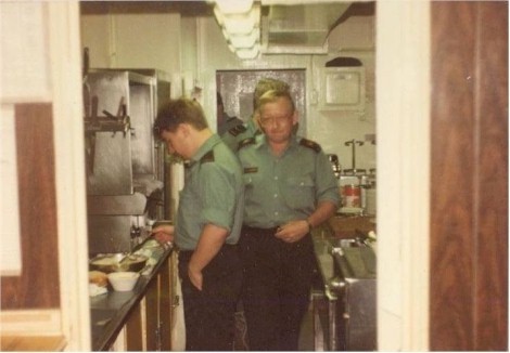 (MC015) "That's gotta hurt". Casualty clearing exercise on HMCS IROQUOIS 280 circa 1982-84 (MC016) "Lionel is okay". Casualty clearing exercise on HMCS IROQUOIS 280 circa 1982-84 (MC017) Billy Boulet and Lionel MacEachran. 1 Mess settee area HMCS IROQUOIS 280 circa 1982-84 (MC018) Breakfast being served in the wardroom circa 1982-84 (MC019) Leading Seaman Danny Nadeau circa 1982-84