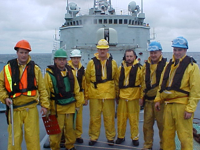 (JL01) IOL preparations on HMCS IROQUOIS 280 (JL02) Deck Department HMCS IROQUOIS with Buffer front and centre (JL03) Deck department HMCS IROQUOIS (JL04) Deck dept. and FX part ship hands prepare HMCS IROQUOIS to be taken in tow by HMCS Charlottetown 339 (JL05) A few crew members of HMCS IROQUOIS