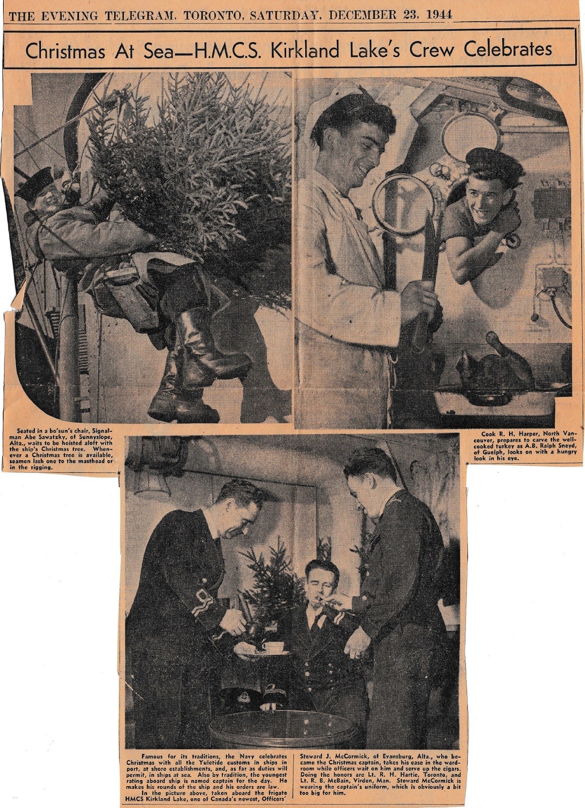 (DHL008) HMCS KIRKLAND LAKE jacket patch (DHL009) Newspaper article - Christmas at Sea - HMCS KIRKLAND LAKE'S Crew Celebrates