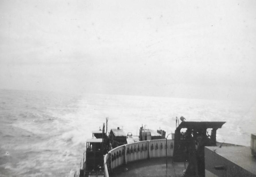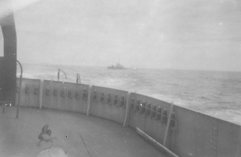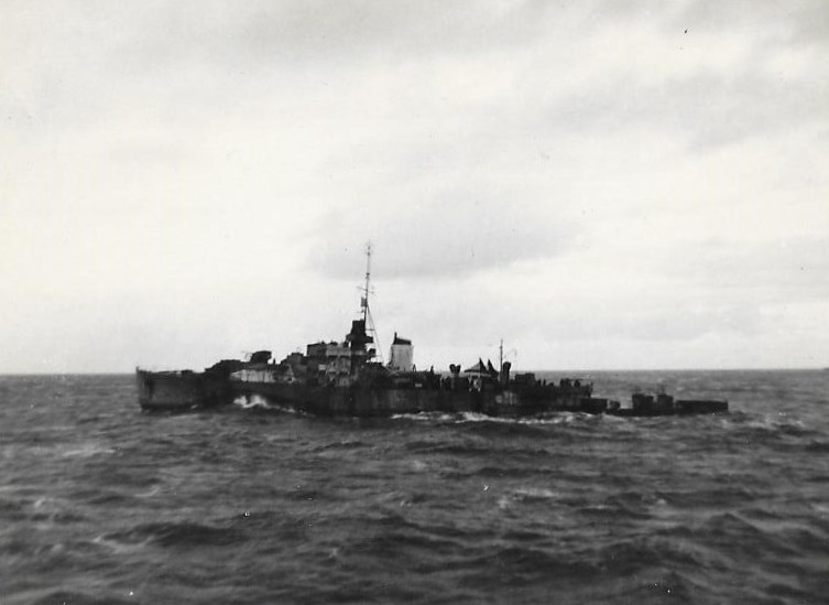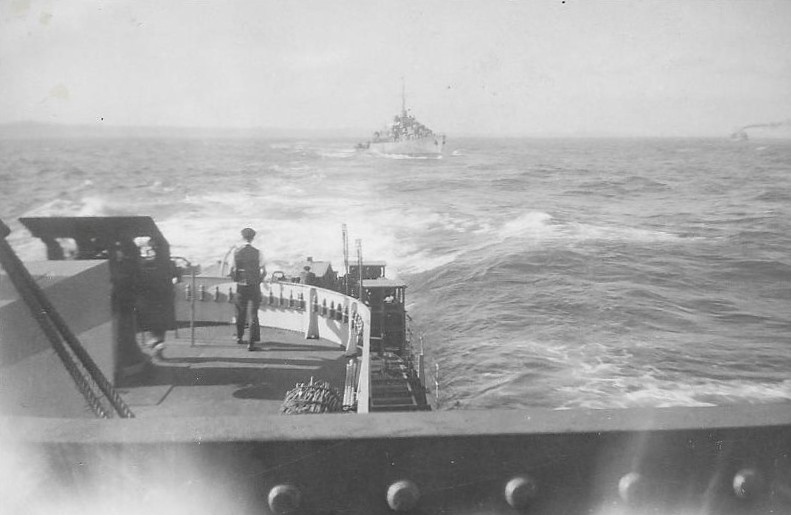 (WHV073) Bill Vickers on the bridge of HMCS LA HULLOISE K668 (WHV074) Unknown destroyer following astern of HMCS LA HULLOISE K668. Photo taken from the port AA gun tub (WHV075) Bill Vickers (closest to the camera) and an unknown sailor on the boat deck of HMCS LA HULLOISE K668 (WHV076) Unknown frigate passing near HMCS LA HULLOISE K668 (WHV077) Unknown corvette sailing near HMCS LA HULLOISE K668