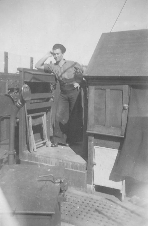 (GFL019) Jack, George Learn, Pete and John on HMCS LA HULLOISE K668 (GFL020) George Learn and Bob - Saint John, NB (GFL021) Casselman, George Learn and Pete on HMCS LA HULLOISE K668 From the collection of George Francis Learn, Stoker 1st Class, RCNVR Courtesy of Brian Learn