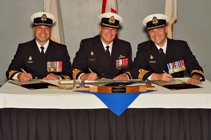 (REG001) HMCS REGINA 334 Gun shield art - Persian Gulf deployment 2003 // This artwork is based on the gun shield art of the WW 2 corvette HMCS REGINA K234 (REG002) HMCS REGINA 334 // Photo taken from USS Kitty Hawk 23 Jun 2008 (REG003) HMCS REGINA's crew is proud to unveil the new Gun Art, a homage to the first HMCS REGINA and our ties to the RCMP. HMCS REGINA K234 was a corvette that was sunk in action on the 8th of August 1944. Thirty of her crew died, but will be in our hearts on Remembrance Day. Lest we forget // DND - RCN photo 11 Nov 2018 (REG004) Commander (Cdr) Daniel Charlebois (left), incoming Commanding Officer, with Commodore (Cmdr) Scott Bishop, reviewing officer and Cdr Jason Boyd (right) outgoing Commanding Officer sign the change of command certificates. Her Majesty Canadian Ship (HMCS) REGINA’s change of command ceremony was held on C3 Jetty at Canadian Force Base (CFB) Esquimalt on May 29, 2013. // Image by: Cpl Michael Bastien, MARPAC Imaging Services // DND-MND Canada 2013 (REG005) Incoming Commanding Officer Commander Colin Matthews (left), Reviewing Officer Captain (N) James Clarke (center) and outgoing Commanding Officer Commander Daniel Charlebois (right) sign the Change of Command Certificates during Her Majesty’s Canadian Ship (HMCS) REGINA Change of Command ceremony held at the Naval Officers Training Centre (NOTC) Drill Hall on July 21, 2015 // Image by: LS Ogle Henry, MARPAC Imaging Services // DND-MND Canada 2015