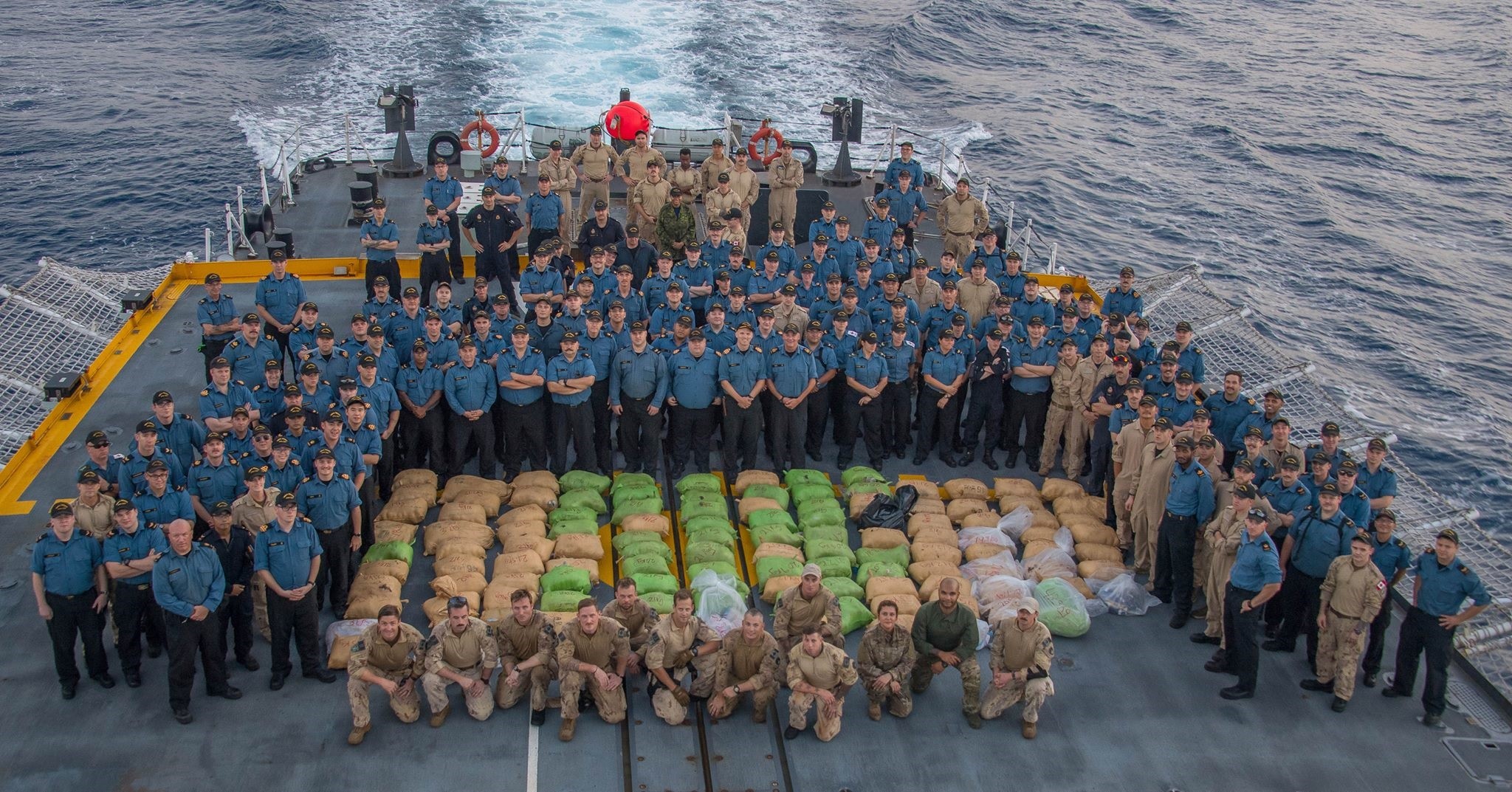 (REG014 - REG016) On May 3, 2019, HMCS REGINA seized 2,054 kg of hashish in the Northern Arabian Sea. This marks their 4th seizure in the region, totaling in 9,155 kg of narcotics seized to date. HMCS REGINA deployed its NTOG boarding team who conducted a search inside the vessel and found 100 hidden bags of hashish. The boarding team and HMCS REGINA’s ship’s company worked tirelessly in heat reaching 47 degree (Celsius) to transfer the hashish to HMCS REGINA for destruction. Source: Canadian Armed Forces Operations - Facebook page