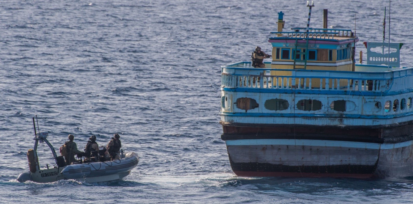 (REG007 - REG009) On April 6, 2019, HMCS REGINA seized 2,569 kilograms of hashish. HMCS REGINA spotted a suspicious fishing vessel, known as a “dhow”, off the coast of Oman and proceeded to stop the boat to investigate further. The ship deployed its Naval Tactical Operations Group (NTOG) team. The NTOG is a dedicated Royal Canadian Navy unit that specializes in advanced boarding operations at sea. A search of the dhow was conducted, during which 119 bags of hashish were located in the ice hold. The narcotics were transferred to HMCS REGINA and subsequently destroyed.