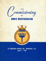Built by Canadian Vickers Ltd., RESTIGOUCHE suffered portside damage in a collision with the freights Manchester Port in Nov 1957 while still in the hands of her builder. She was finally commissioned at Montreal on 07 Jun 1958. She was present at the formal opening of the St. Lawrence Seaway in 1959, and at a mini-UN naval review in Toronto the following month, immediately afterward carrying the Lieutenant Governor of Newfoundland on a tour of that province's northeast outports. On 29 Apr 1961, RESTIGOUCHE and Columbia 260 made a port visit to Washington, D.C. She underwent her IRE modernization in 1970-72 at Halifax Shipyards.