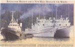 The sinking of the RESTIGOUCHE - the RESTIGOUCHE was about 80% prepared for sinking purposes when an approaching hurricane force them to move the ship across the harbour so it would be in the lee of the storm. It was done very quickly and the harbour master was cautioned against towing the ship by the stern because of the hull cuts in preparation for scuttling. While under tow, she listed to port, pulling the diver access holes below the waterline which resulted in her sinking at a depth of about 60 feet.