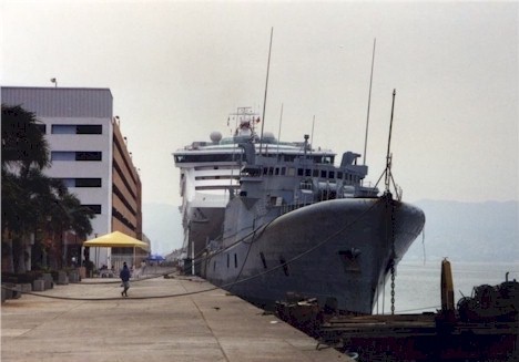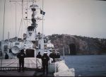 (ND002 - ND003) HMCS RESTIGOUCHE, Standing Naval Force Atlantic - It was February 1970 I believe, and we were returning from exercise in and around the arctic circle off of northern Norway. I was on duty in the radio shack when a message came in with orders to proceed to Bergen for painting ship. Huh! It's February! When we entered Bergen Harbour I was at my "entering harbour station" at the top part of the ship. As we proceeded in we were a little confused as we couldn't see a jetty or pier where we were headed to tie up. In fact we were steering straight for the side of a mountain. Then, as we approached a huge door started to lift on the side of the mountain and to our immense surprise, we just sailed right on in. It really was amazing. (ND005) Standing Naval Force Atlantic - March 1970. HMCS RESTIGOUCHE 257 centre/lead ship From the collection of Neil Dunnigan Courtesy of Neil Dunnigan