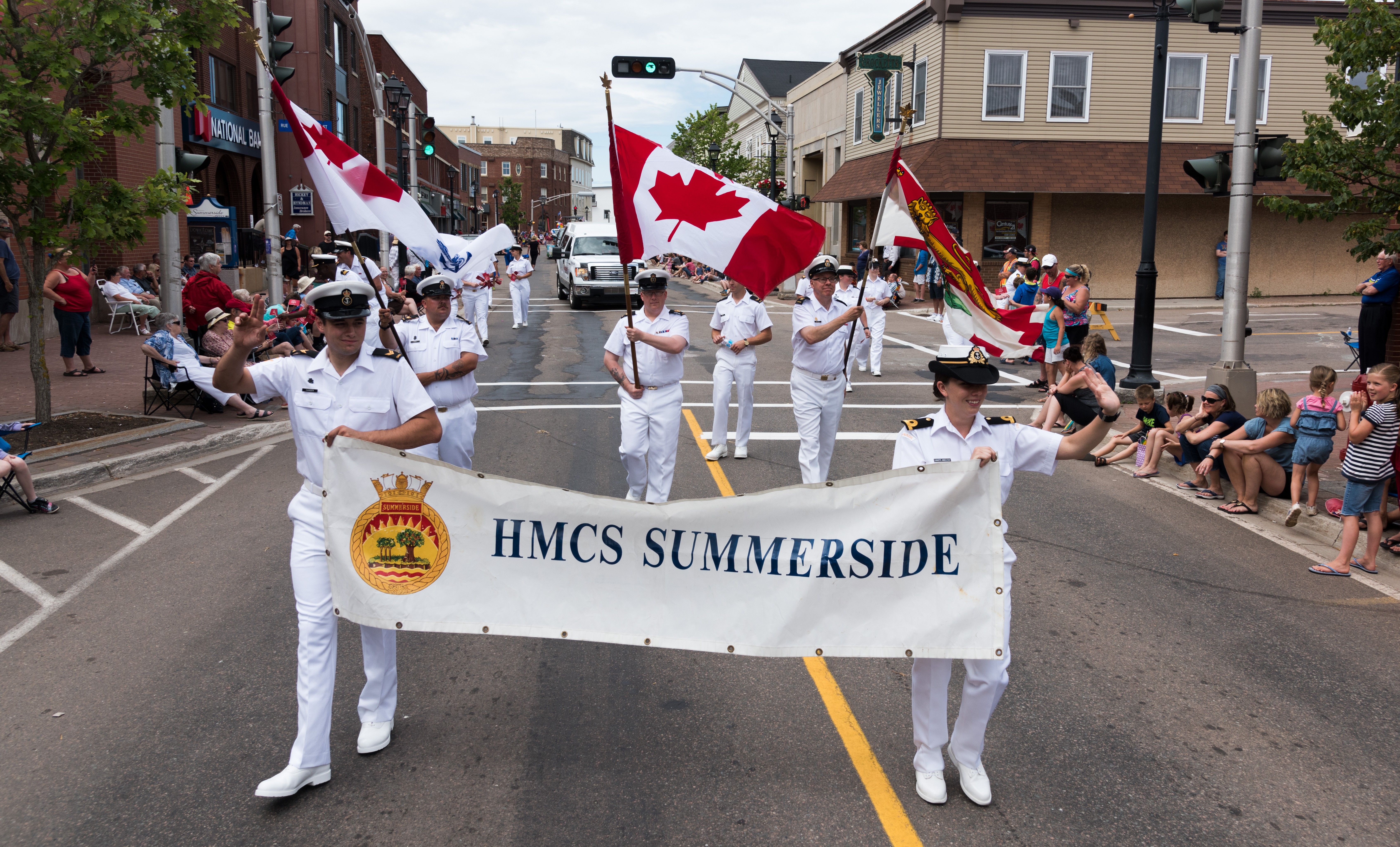(SMR011) Crew of HMCS SUMMERSIDE 711 standing on the fo'c's'le after having crossed the Arctic Circle - 17 Aug 2013 (SMR012) On 07 Mar 2016 HMCS Summerside 711 with members of a United States Coast Guard (USCG) Law Enforcement Detachment (LEDET) embarked, intercept a drug smuggling vessel in the waters of Nicaragua and seized 16 bales of cocaine weighing approx 364 kilograms. // Photo source: Naval Today (SMR013) HMCS Summerside 711 participating in the sail past at Halifax at the start of Exercise Cutlass Fury - 12 Sep 2016 // Courtesy of Clarence Hemeon (SMR014) Crew members of HMCS SUMMERSIDE 711 walk in a parade during the lobster festival as the ship visits its namesake city of Summerside, Prince Edward Island, on July 15 2017 // Photographer: Leading Seaman Dan Bard // RCN image # HS06-2017-0691-218 (SMR015) HMCS KINGSTON 700 and HMCS SUMMERSIDE 711 alongside in Portsmouth (UK), May 2019 at the end of the jetty where there carrier HMS QUEEN ELIZABETH is tied up. KINGSTON and SUMMERSIDE are enroute to exercises in the Baltic and are outfitted with their minesweeping gear // Courtesy of Guy Jeffery, Cdr (ret'd)