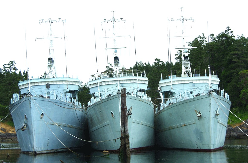 MIRAMICHI 163, HMCS THUNDER 161 and HMCS FUNDY 159 at Beecher Bay,