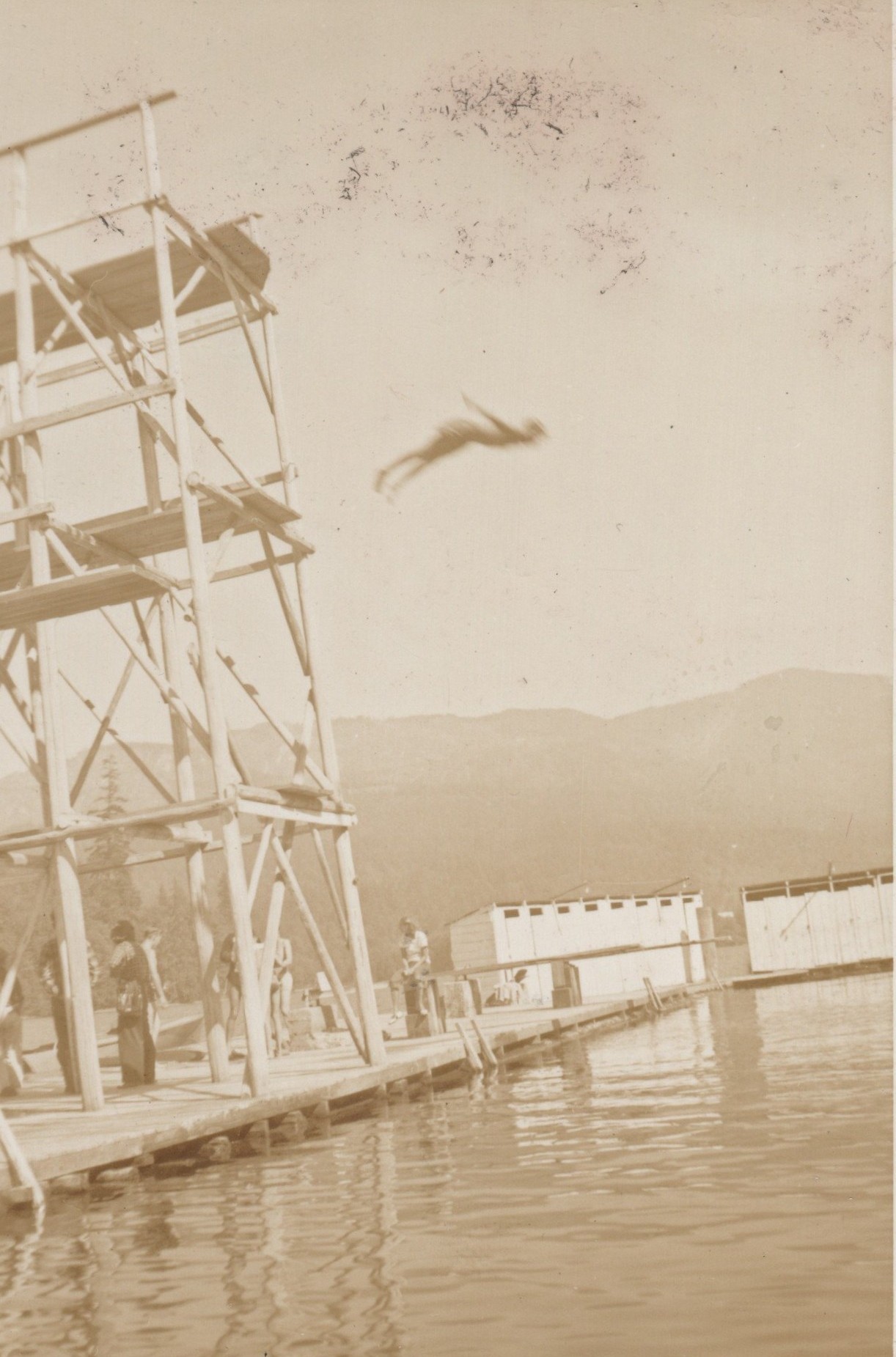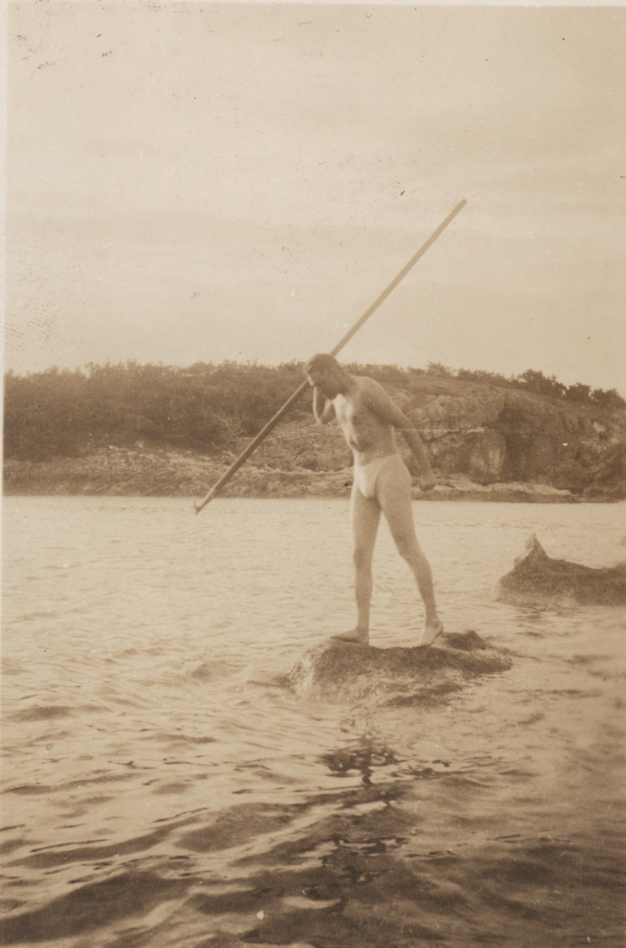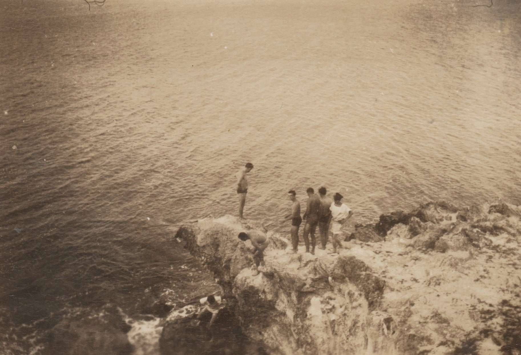 (CGWJ027) Sailors from HMCS TRILLIUM K172 on a cliff in Bermuda, Work-ups - Aug 1944 (CGWJ028) Sailor from HMCS TRILLIUM K172. It looks like he is attempting spear-fishing using a boat hook. Work-ups - Aug 1944 (CGWJ029) A TRILLIUM sailor diving from a platform at a pool in Bermuda, Work-ups - Aug 1944 (CGWJ030) the Cox'n on HMCS TRILLIUM K172, Bermuda, Work-ups - Aug 1944 (CGWJ031) A Chief and a Petty Officer on HMCS TRILLIUM K172, Bermuda, Work-ups - Aug 1944
