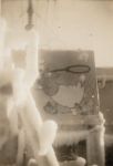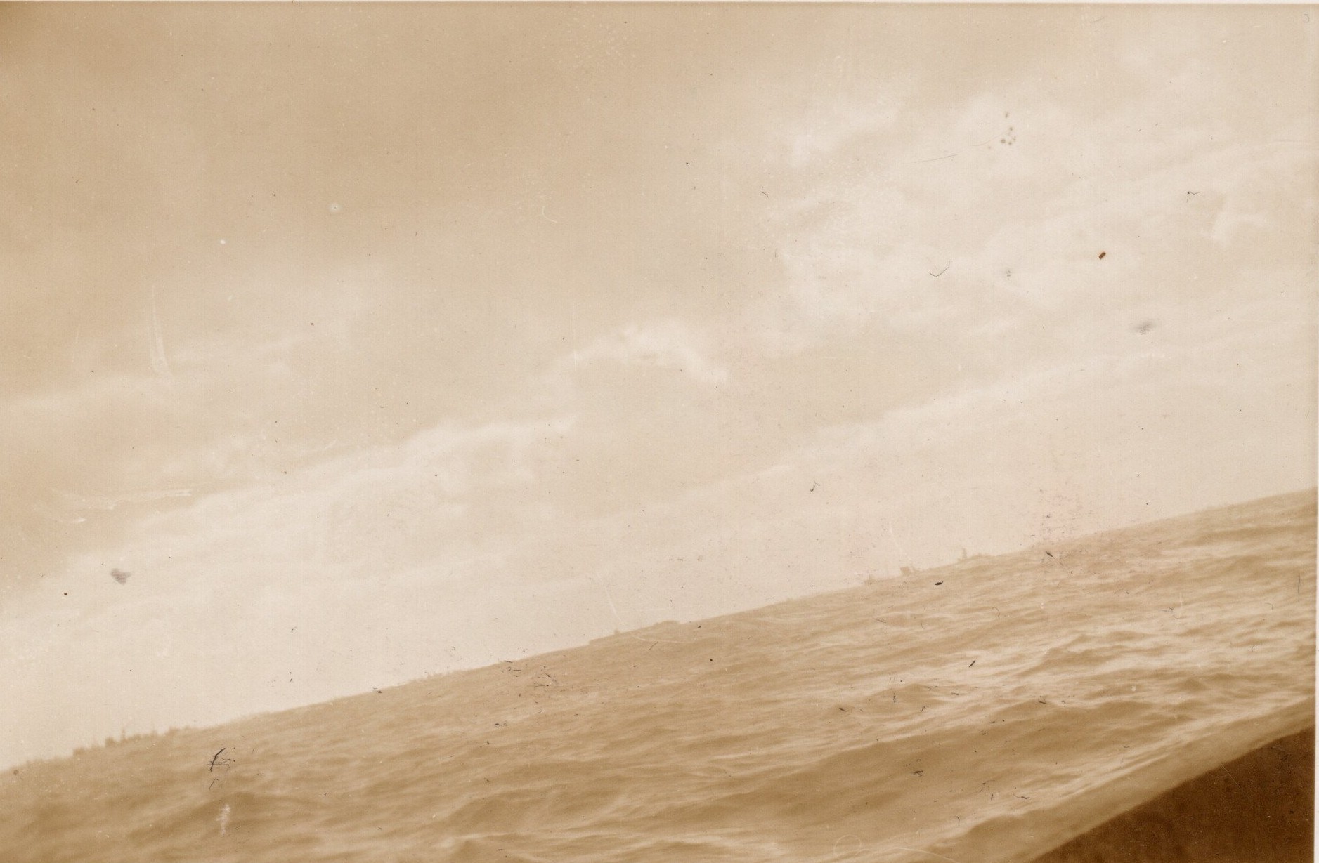 (TB45) Unknown sailor on the boat deck, between the funnel and the boiler room hatch, on HMCS TRILLIUM K172 (TB46) Unknown sailor painting the funnel on HMCS TRILLIUM K172 (TB47) Unknown sailors painting the ship's side from HMCS TRILLIUM'S boat (TB48) With the shoreline in the distance, the ship's boat is being inspected after being turned out and readied for use as HMCS TRILLIUM K172 heads out to sea