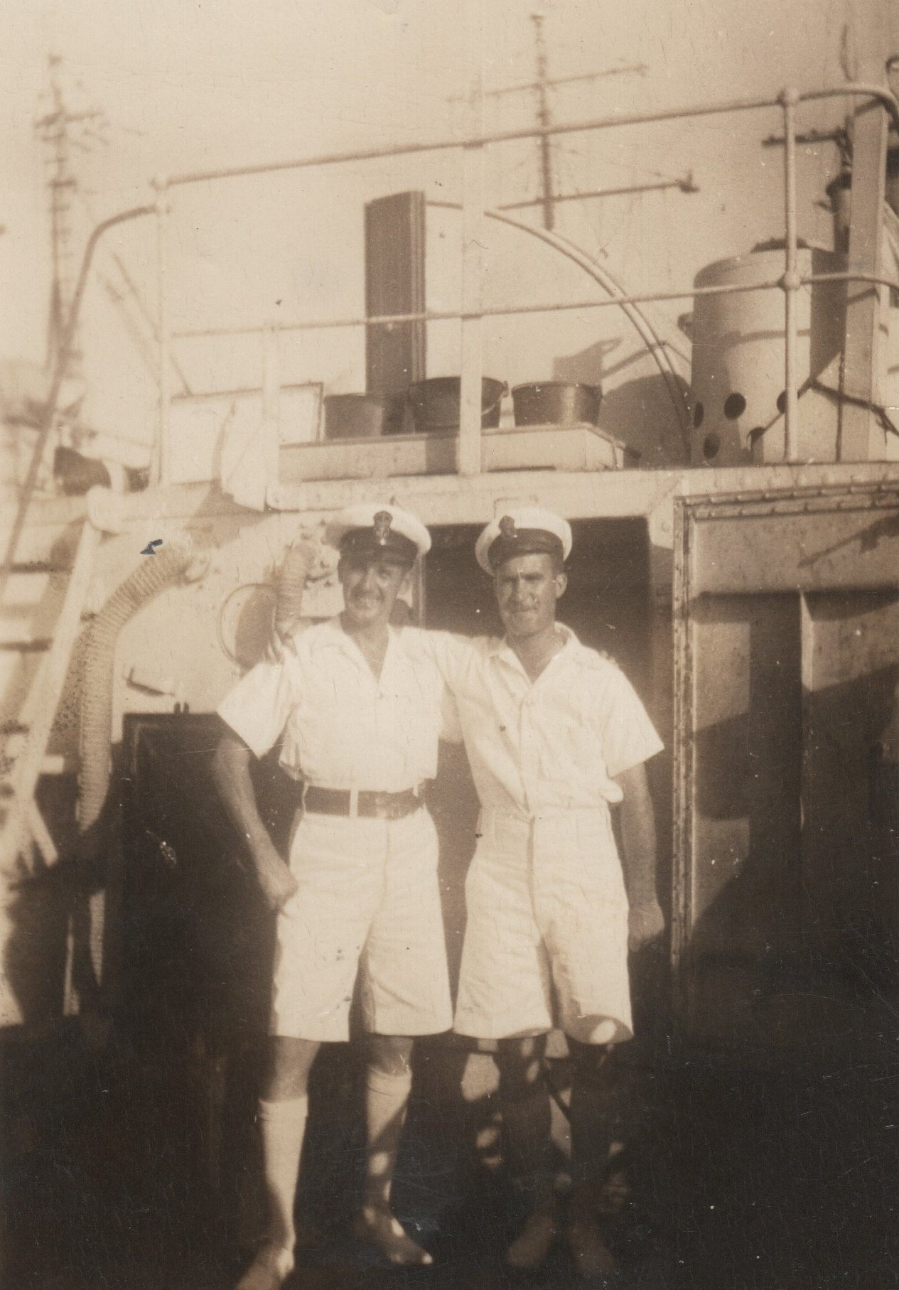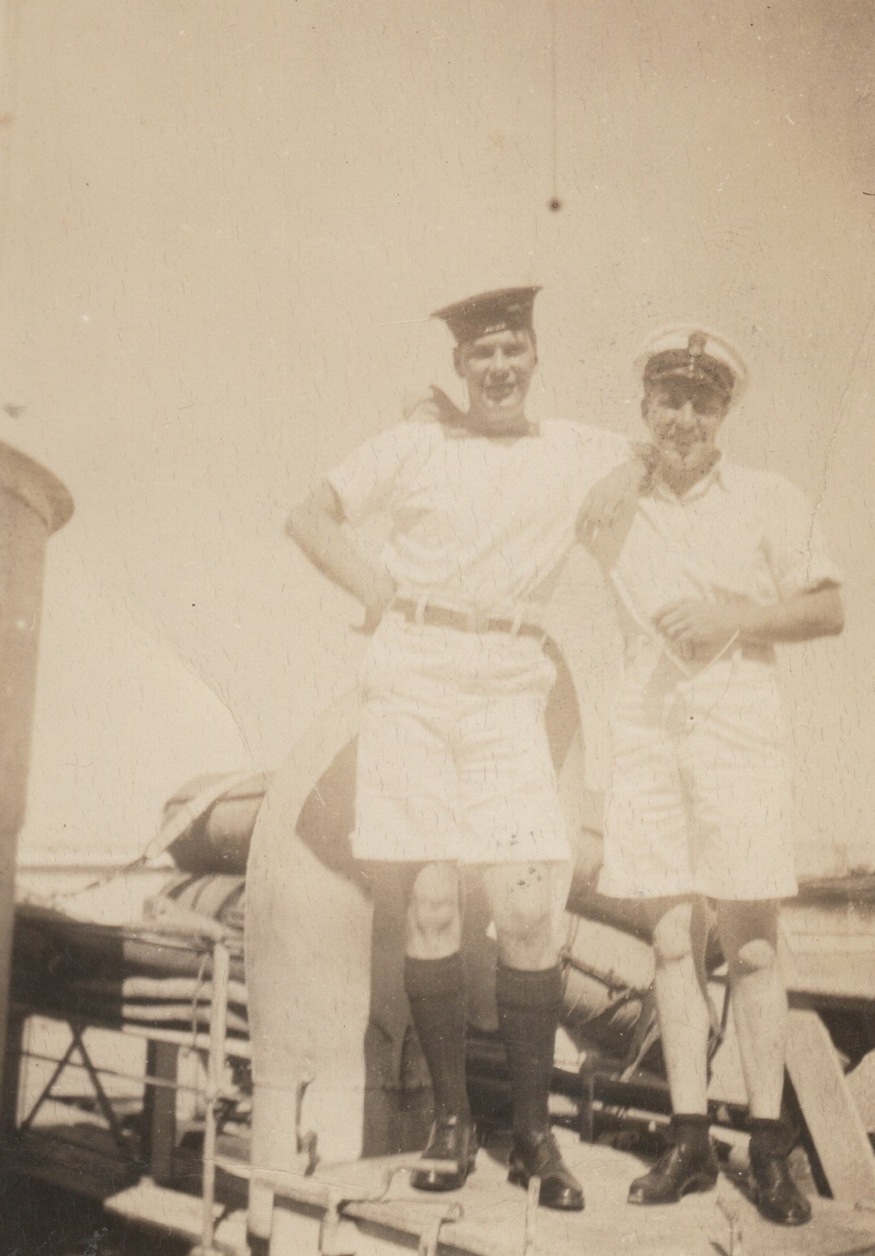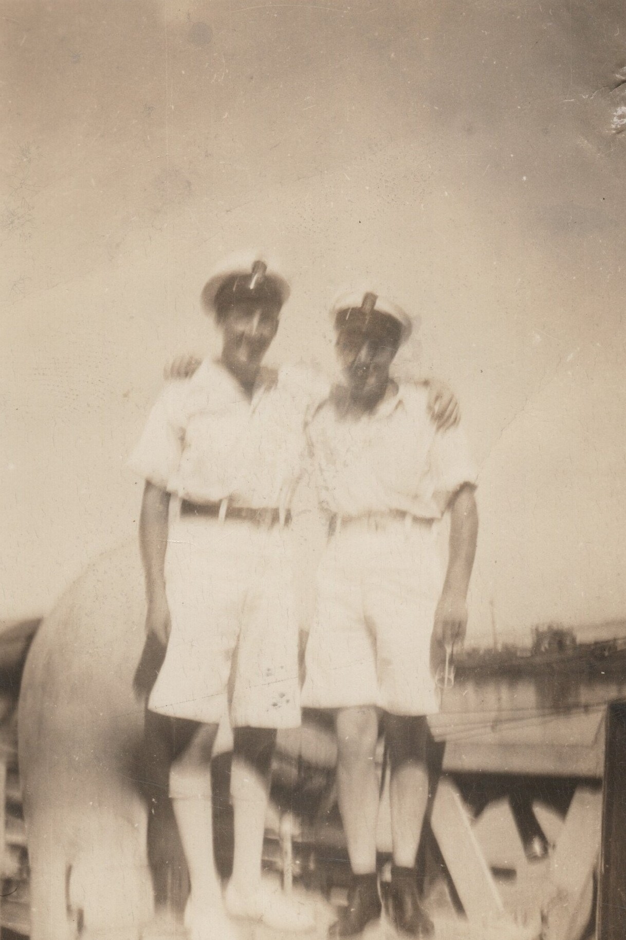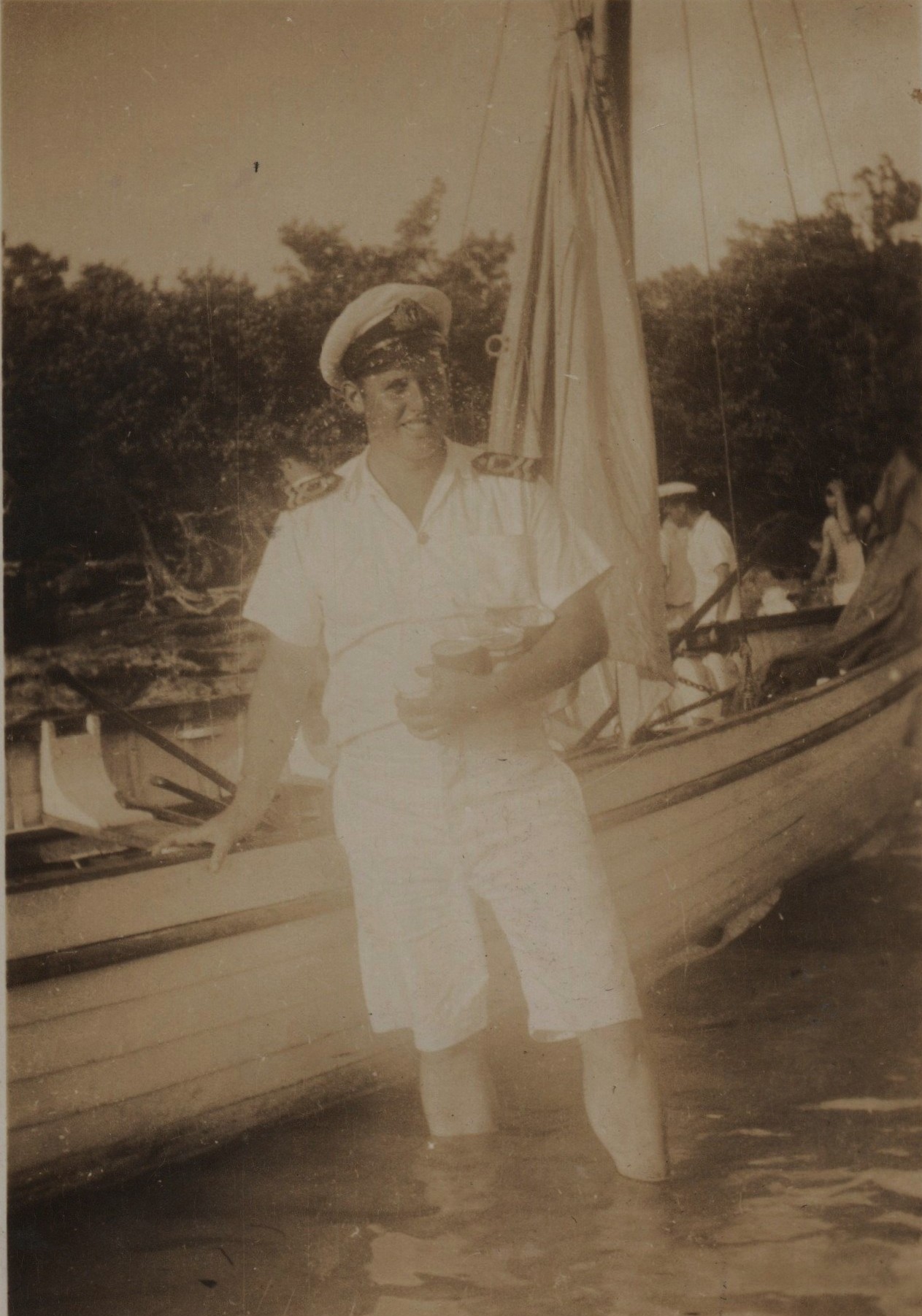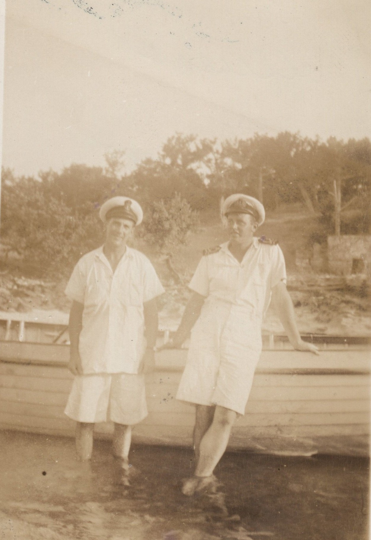 (CGWJ022) Sailors from HMCS TRILLIUM K172 sailing around Bermuda, Work-ups - Aug 1944. Walt Johnson on the far right (CGWJ023) Sailors from HMCS TRILLIUM K172 sailing around Bermuda, Work-ups - Aug 1944. Walt Johnson on the far right (CGWJ024) Cox'n from HMCS TRILLIUM K172, sailing around Bermuda, Work-ups - Aug 1944 (CGWJ025) An officer from HMCS TRILLIUM K172, sailing around Bermuda, Work-ups - Aug 1944 (CGWJ026) Two officer from HMCS TRILLIUM K172, sailing around Bermuda, Work-ups - Aug 1944 * During their sailing excursion around Bermuda, the crew encountered some goats and chased them around.