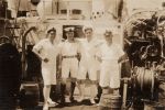 (TB40) Unknown Sig on the starboard signal light on HMCS TRILLIUM K172 (TB41) Unknown Tel or SD looking out a scuttle on HMCS TRILLIUM K172 (TB42) Chiefs and Petty Officer of HMCS TRILLIUM K172 // Identified 2nd from right - CERA James (Jimmy) Sands (TB43) Unknown officer and CPO on the lower bridge wing of HMCS TRILLIUM K172 (TB44) Two unknown sailors on HMCS TRILLIUM K172 enjoying a bit of quite time reading and keeping warm by sitting on the grate of the boiler room hatch