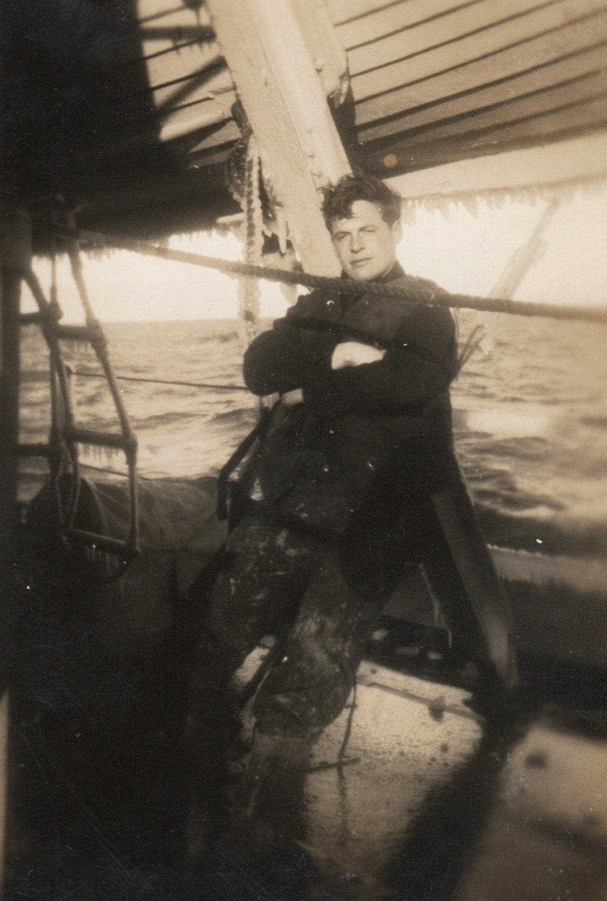 Unknown sailor on HMCS TRILLIUM K172 (TB29) Unknown sailor on the boat deck of HMCS TRILLIUM K172 at St. John's, Nfld