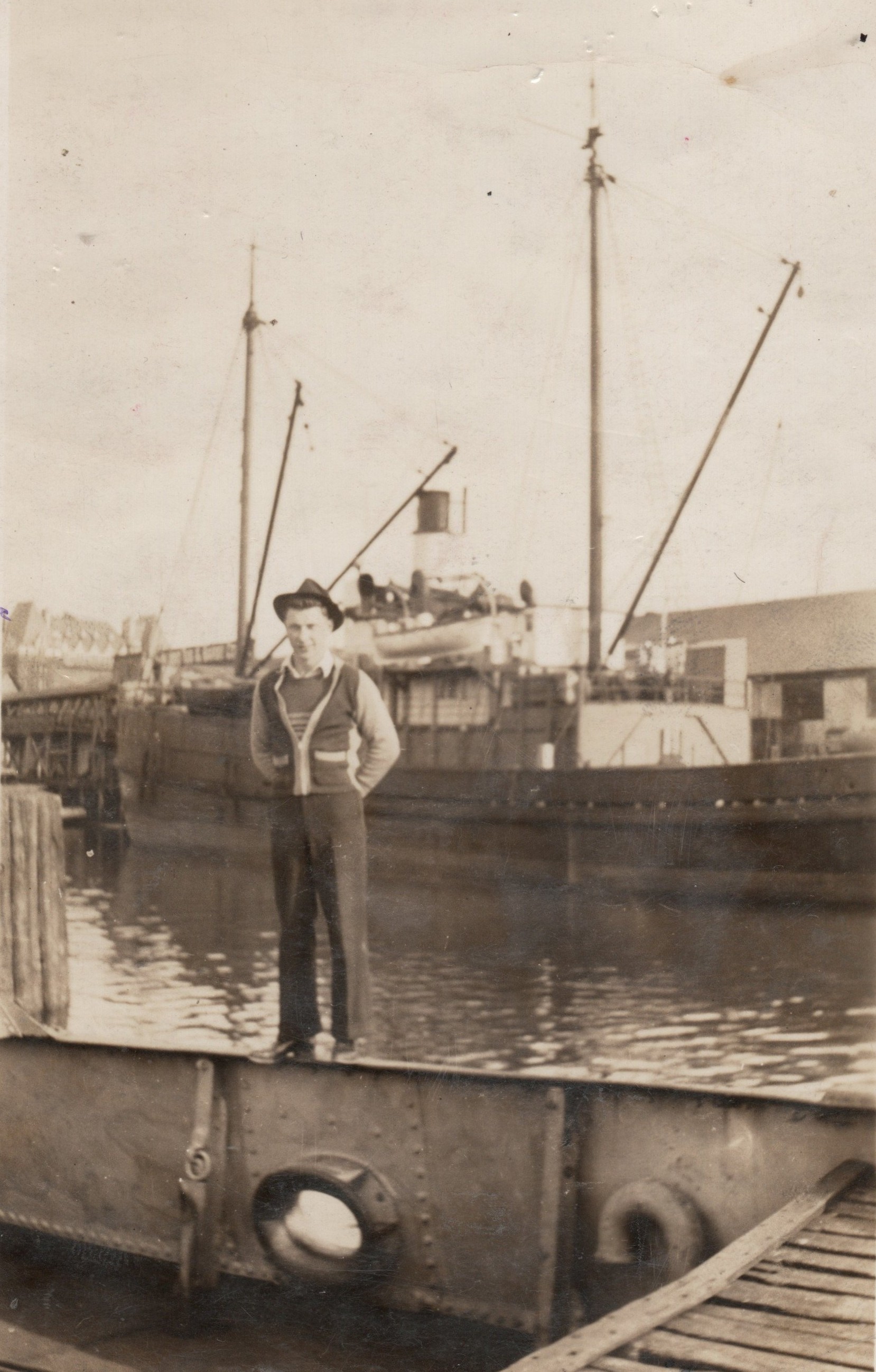 (TB10) One of three casualties on board HMS TRILLIUM K172 who were killed when TRILLIUM was staffed by a German plane on 12 Apr 1941. Though manned mainly by a Canadian crew, TRILLIUM was built for the Royal Navy. She was transferred to the RCN 15 May 1941. (TB11) Leading Stoker Campbell on HMCS TRILLIUM K172 (TB12) OS Cottrell on HMCS TRILLIUM K172 (TB13) Jack Hollands in the crow's nest on HMCS TRILLIUM K172 (TB14) Bill Owens on the barrel of the 4-inch gun on HMCS TRILLIUM K172