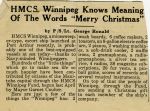 (WNI-NMoM033) "WINNIPEG" Greets Winnipeg - A Christmas message (WNI-NMoM034) Ship's Company Thanks Winnipeg (WNI-NMoM035) City's Ship Gets Wine and Water (WNI-NMoM036) Voyage Give Picture of Life Aboard Ship (WNI-NMoM037) Surface and Convoy Battle