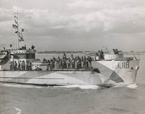 (LCIL118-001) LCI(L) 118 with LCI(L) 262 on her port side. Photo taken prior to D-Day // Photo taken by AB W.C. Skellett serving on LCI(L) 310 // From the collection of AB William Charles (Bill) Skellett // Courtesy of Mike Skellett (LCIL118-002) Soldiers disembarking from the landing craft on the invasion beaches. LCI(L)-118 seen on the right // Photo taken by AB W.C. Skellett serving on LCI(L) 310 From the collection of AB William Charles (Bill) Skellett // Courtesy of Mike Skellett (LCIL118-003) LCI(L) 118 disembarking troops at Normandy // Courtesy of Dave Shirlaw, RCN News Magazine (LCIL118-004) SLt E.D. Rushbrook, RCNVR, painting "Lucky Canuck" bridge art on the superstructure of LCI(L)-118 // Library and Archives of Canada MIKAN 4950840