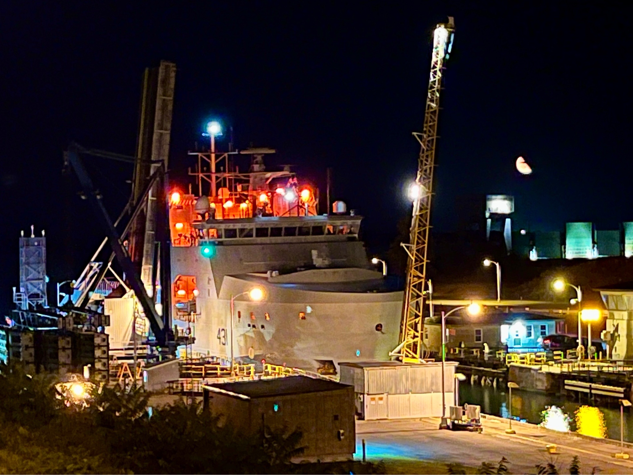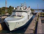 (BG001) The future HMCS MARGARET BROOKE 431 on 02 Nov 2019 being prepared to "float-up" Courtesy of Barry Gerrard