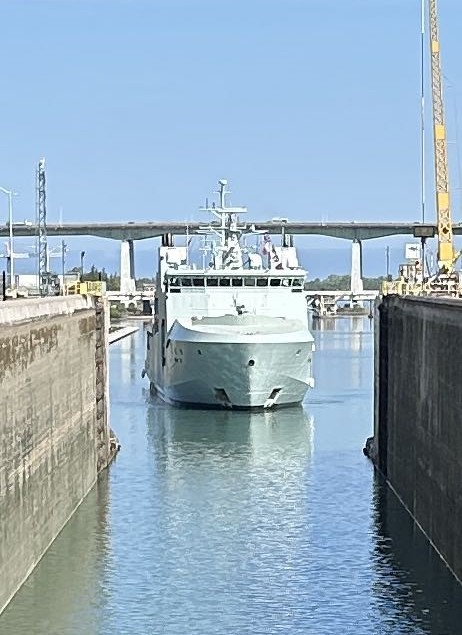 (MBK021) HMCS MARGARET BROOKE transiting the Welland Canal // Photographer: Rhonda Read // Courtesy of Bruce Walter (MBK022 - MBK024) HMCS MARGARET BROOKE entering one of the locks on the Welland Canal on route from Lake Ontario to Lake Erie // Photographer Stephane Alan Legal, Lt (N), ret'd // © Stephane Alan Legal 2025 (MBK025) HMCS MARGARET BROOK transiting the Detroit River during her 2025 Great Lakes Deployment // Photographer: Ken Bosse // © Ken Bosse 2025
