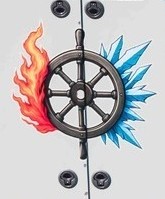 HMCS MAX BERNAYS sporting gunshield art - a ship's wheel flanked by fire and ice. Source: Royal Canadian Navy Today and Yesterday facebook post