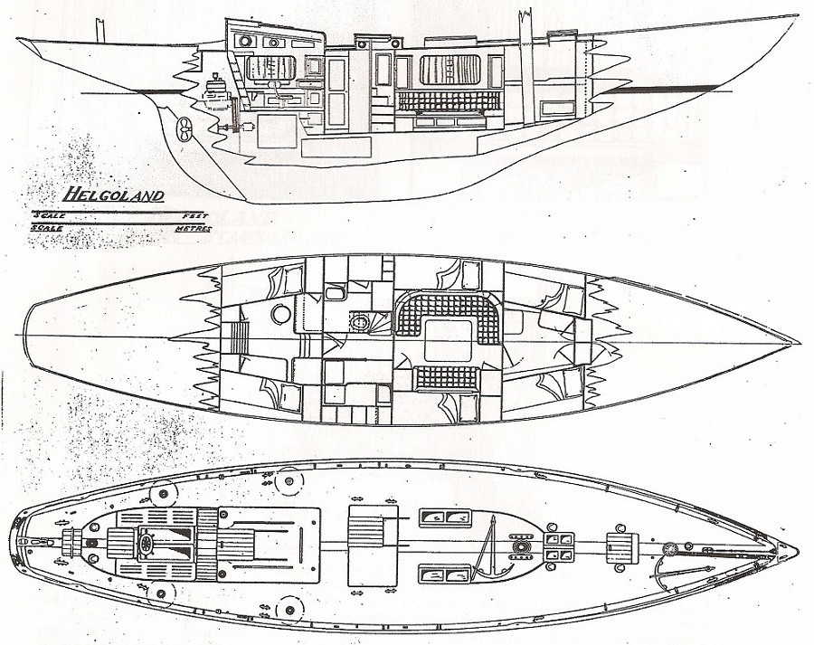 "The impression one gets from these plans is that they have been drawn by a man with a thorough knowledge of the sea and that the vessel can come straight from the builder's yard into the race capable of winning it, or she can sail straight from the builder's yard round the word, for these plans, without doubt, represent a very fine cruiser that would also make a good ocean racer, a vessel on which men can live in comfort for months on end. Seaworthiness, speed and comfort all combine to make her a perfect little ship." (From the book "The History of the Helgoland")
