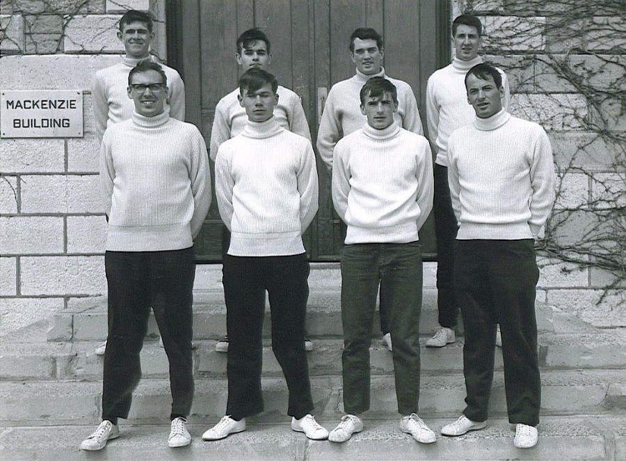 (PKL003) CNAV PICKLE // RCN Photo # DNS 14477 // Courtesy of the Comox RCAF Museum (PKL004) CNAV PICKLE // Source/Credit: The Library and Archives of Canada - a162805 (PKL005) CNAV PICKLE's 1968 Trans-Atlantic Race // The Sentinal Magazine (PKL006) Recent RMC grads who were part of PICKLE's crew for the 1968 Trans-Atlantic Race // Front (L-R): Eric Ruff, John Jamieson, Jean-Marie Olivier, Richard Lalonde Back (L-R) Tom Badenoch, Tim Blythe, Chris Haines, Ian Sanderson // Courtesy of Eric Ruff (PKL007) LCdr George Fulford III at the helm of CNAV PICKLE // From the collection of LCdr George Fulford III // Courtesy of George Fulford IV