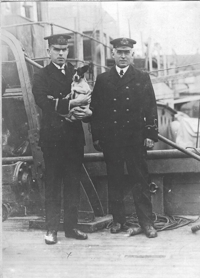 (JBC001) On Patrol Vessel IV, Halifax, 1918 (JBC002) Joseph B. Champion holding mascot Hick, and Mate Charles McTean of Nova Scotia on PV IV, Halifax, 1918 (JBC003) PV IV after trip to Sable Island to pick up sick man. Feb 1919 From the collection of Joseph Barr Champion Courtesy of Garry Weir, Petty Officer 1st Class, Canadian Navy