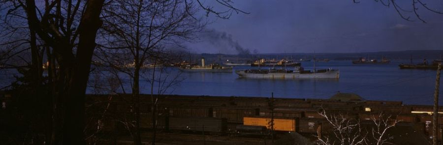 Convoy forming up in Bedford Basin DND-RCN photo Source: LAC R112, RG24, Volume number: 36250 Item ID: CT312 Item No: 4950969