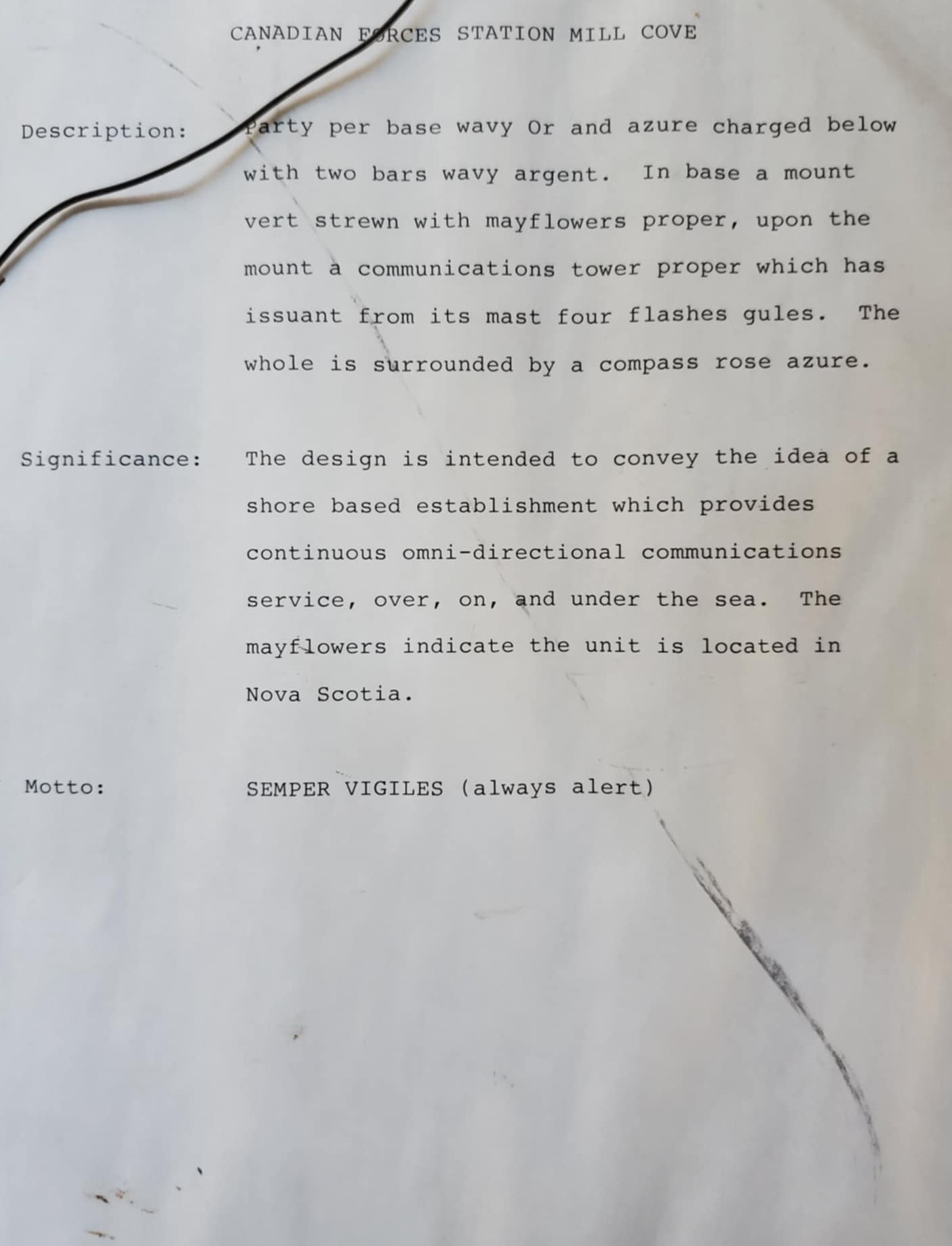 The badge of CFS MILL COVE at NCS Halifax Courtesy of Sarah Davill