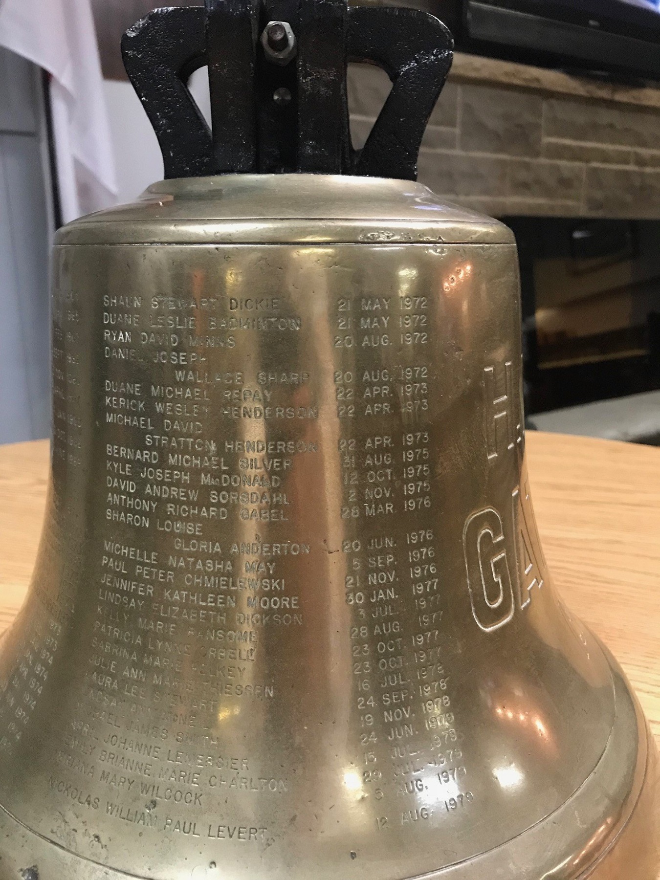 This bell for HMCS GATINEAU 236 is located at the Royal Canadian Legion Branch # 227, Gatineau, Gatineau, QC. Photo courtesy of John Gabel