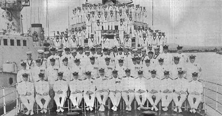(5) Hope, Lt, Gunnery Officers (6) Allan, LCdr, CO (7) Peers, Capt (8) Godbut, Lt (N) (13) Lyttle, Jim, LS.QM (17) Stenson, Al, C1ER (18) Paulson, C2SN, Cox'n (21) Christie, Al, P1ER (23) Webb, Tel, P1ER (25) Hill, P2RP (26) Hammond, Al (34) Perissini, Lou, C2ER (36) Carlstran, Leonard, P1ER (37) Davidge, Al, P1RP (38) Hill, Stan, P1LT (41) Docstader, Clarence, P1WU (43) Hope, Campbell, P1SN (44) Reitsma, Gord, P2SG or Reil, Joe, P2ER (46) Johnson, Clair, P2ER (48) Florchuk, Stan, P2ER (49) Harpham, Barry, LS.FC