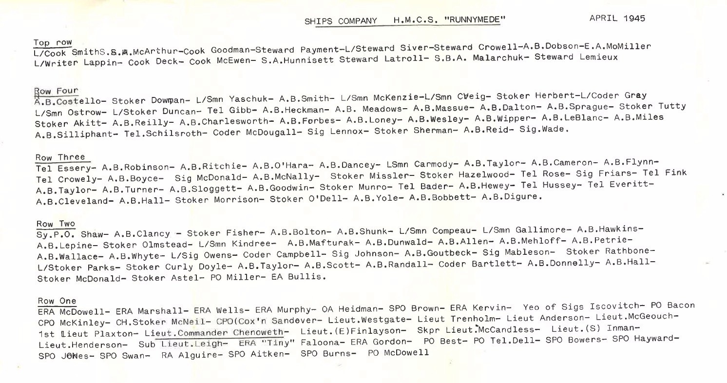 HMCS RUNNYMEDE K678 Ireland, Apr 1945 Click on the above photo to view a larger image