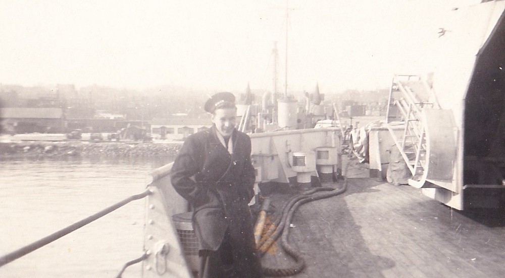 (HBS021) Port visit Bermuda 1943 - photo taken from HMCS WINNIPEG J337 (HBS022) Hamilton Skilling ashore, possibly in Bermuda (HBS023) Port visit Bermuda 1943 - unknown sailors by the twin Oerlikon, HMCS WINNIPEG J337 (HBS024) Unknown sailor on the bridge of HMCS WINNIPEG J337 (HBS025) Unknown sailor standing on the rail of the twin Oerlikon on HMCS WINNIPEG J337