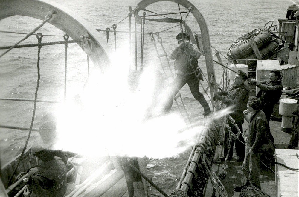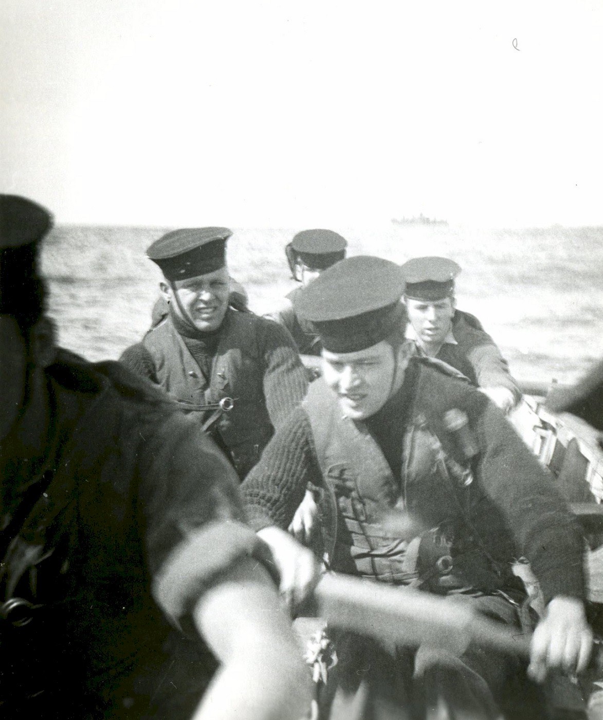 (JEH021) HMCS ROCKCLIFFE J355 - circa 1945 (JEH022) HMCS ROCKCLIFFE J355 - circa 1945 (JEH023) HMCS ROCKCLIFFE J355 - circa 1945 (JEH024) Surgeon-Lieutenant John Nelson Boright Reilly, RCNVR, climbing into the seaboat on HMCS ROCKCLIFFE J355 - circa 1945 (JEH025) Surgeon-Lieutenant John Nelson Boright Reilly, RCNVR, climbing ladder onto HMCS ROCKCLIFFE J355 - circa 1945