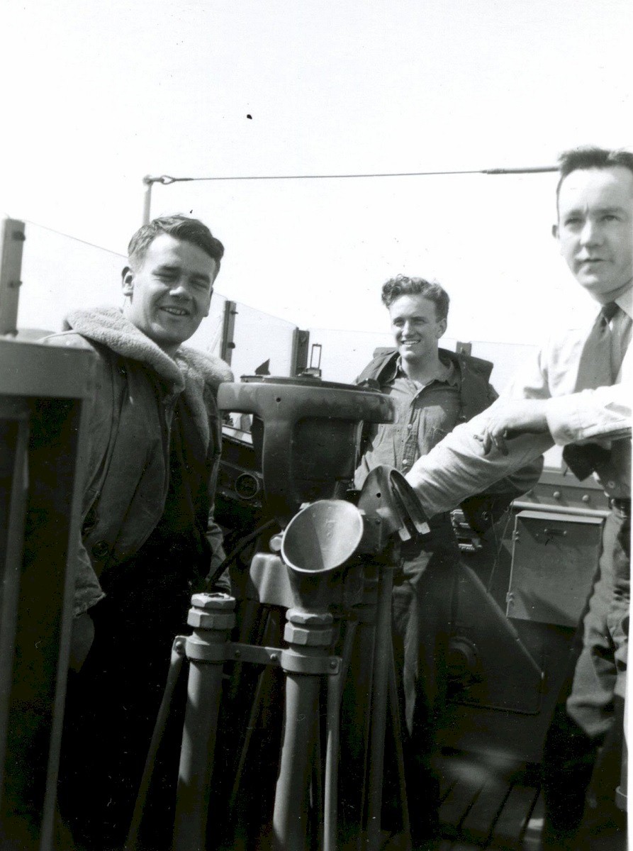 (JEH026) Surgeon-Lieutenant John Nelson Boright Reilly, RCNVR by the ship's bell on HMCS ROCKCLIFFE J355 - circa 1945 (JEH027) Boat crew form HMCS ROCKCLIFFE J355 - date unknown (JEH028) Boat crew form HMCS ROCKCLIFFE J355 - date unknown (JEH029) Lt. Ron McBride, SLt Ron Penfold, Cox'n George Lodge, HMCS ROCKCLIFFE J355 - circa 1945 (JEH030) Lt Moray Edwards and Yeoman Bushman on the bridge of HMCS ROCKCLIFFE J355 - circa 1945
