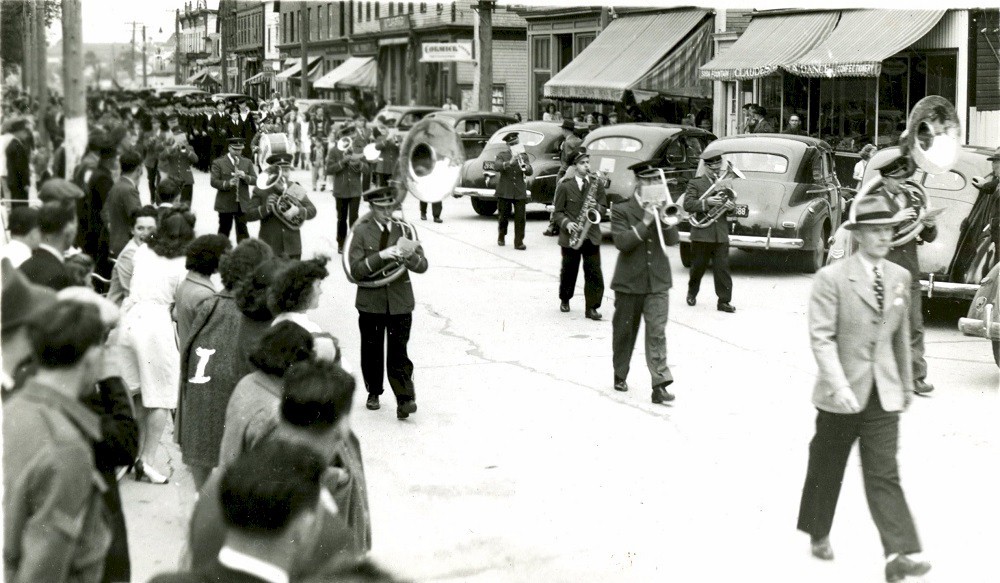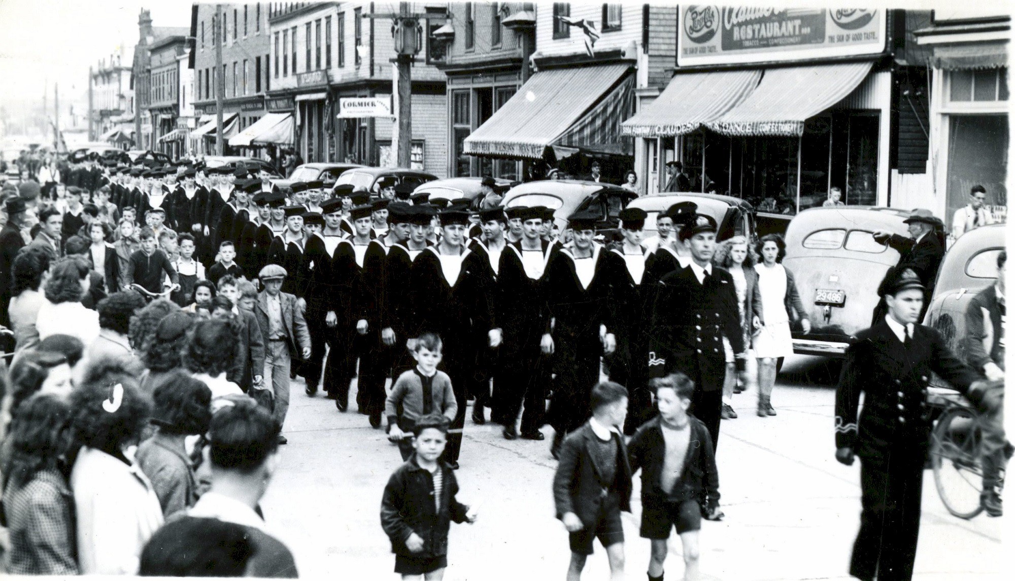 (JEH053 - JEH055) Parade at Bathurst, NB, 02 Jul 1945 - Officers and ratings from HMCS ROCKCLIFFE J355 and HMCS OSHAWA J330