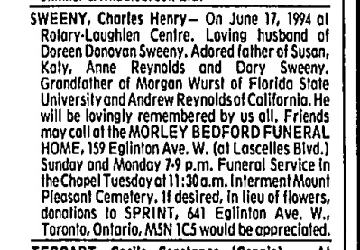 Ships served in: TORONTO DIVISION RCNVR - As a Prob SLt, RCNVR (Navy List Apr 1942) (Sweeny, C.H.) RCN BARRACKS ESQUIMALT - Appointed to RCN Barracks Esquimalt 01 Sep 1942 as a SLt, RCNVR (seniority 27 Apr 1942) (Navy List Sep 1942) (Sweeny, C.H.) * Listed in Navy List for March 1943 as Sweeney, C.H., SLt, RCNVR (seniority 27 Apr 1942) HMCS QUATSINO - Appointed to Quatsino 18 Mar 1943 as a Lt, RCNVR (seniority 27 Apr 1943) (Navy List Aug 1943). On page 170 for the Aug 1943 Navy List, he is listed on as Sweeney - appointed to Quatsino; and under the entry for Quatsino on page 546, he is listed as Sweeny . * Listed n the Navy List for Dec 1943 as Sweeny, Lt, RCNVR, Official Number O-71540 (seniority 27 Apr 1943) HMCS NEW WATERFORD - Appointed to New Waterford 16 Jan 1944 as a Lt, RCNVR - Official number O-71540 (Navy List Feb 1944). As of Navy List for Mar 1945 - Charles H. Sweeny was still serving in HMCS New Waterford. * After Mar 1945 there are no further entries in the available Navy Lists for Charles H. Sweeny / Sweeney