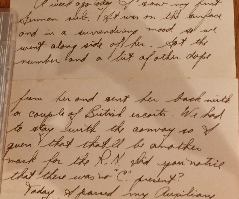 Except from a letter Clare Sutton wrote home about his (and HMCS STONETOWN's) encounter with U-244. Not his comment on who will receive credit for the surrender. Letter dated 20 May 1945.