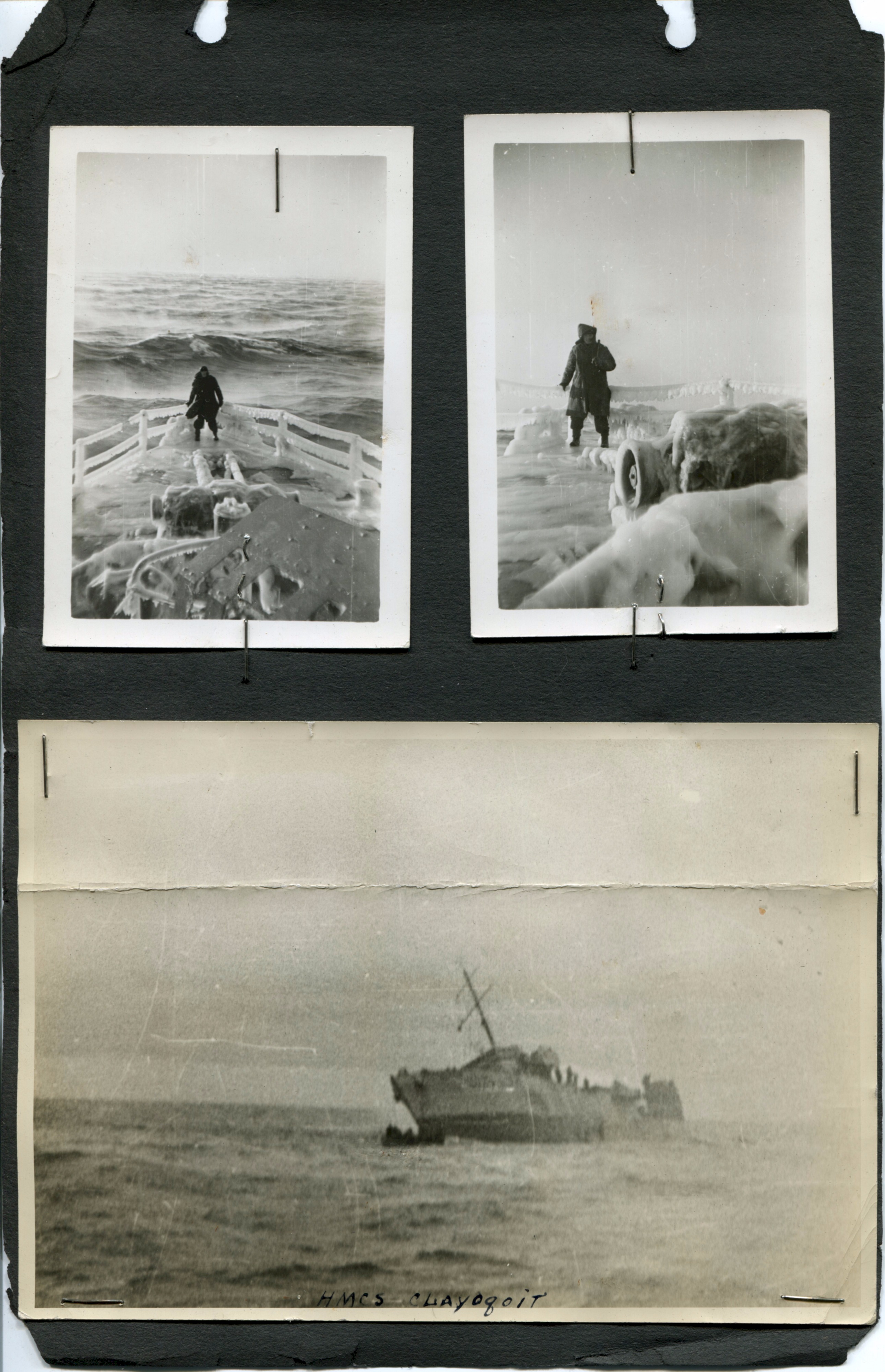 (WM20-WM21) Unidentified sailors on HMCS TRANSCONA's iced-up fo'c's'le (WM22) HMCS TRANSCONA's iced-up fo'c's'le, just aft the breakwater (WM23) Looking aft down port side of HMCS TRANSCONA. Note the ice covered depth charge launcher