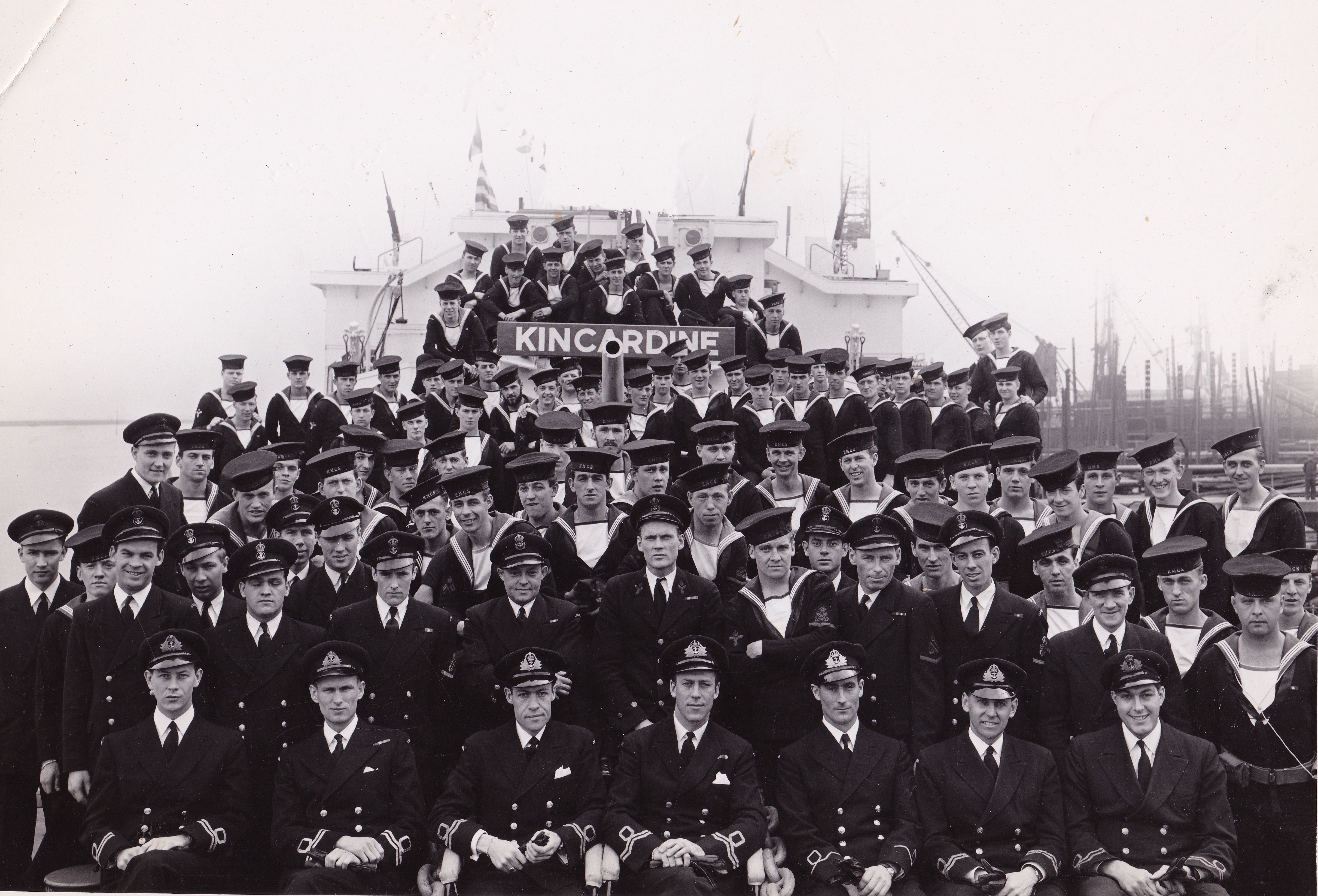 This photo has been posted, with crew numbered for identification, on the ship's company photo page for HMCS KINCARDINE