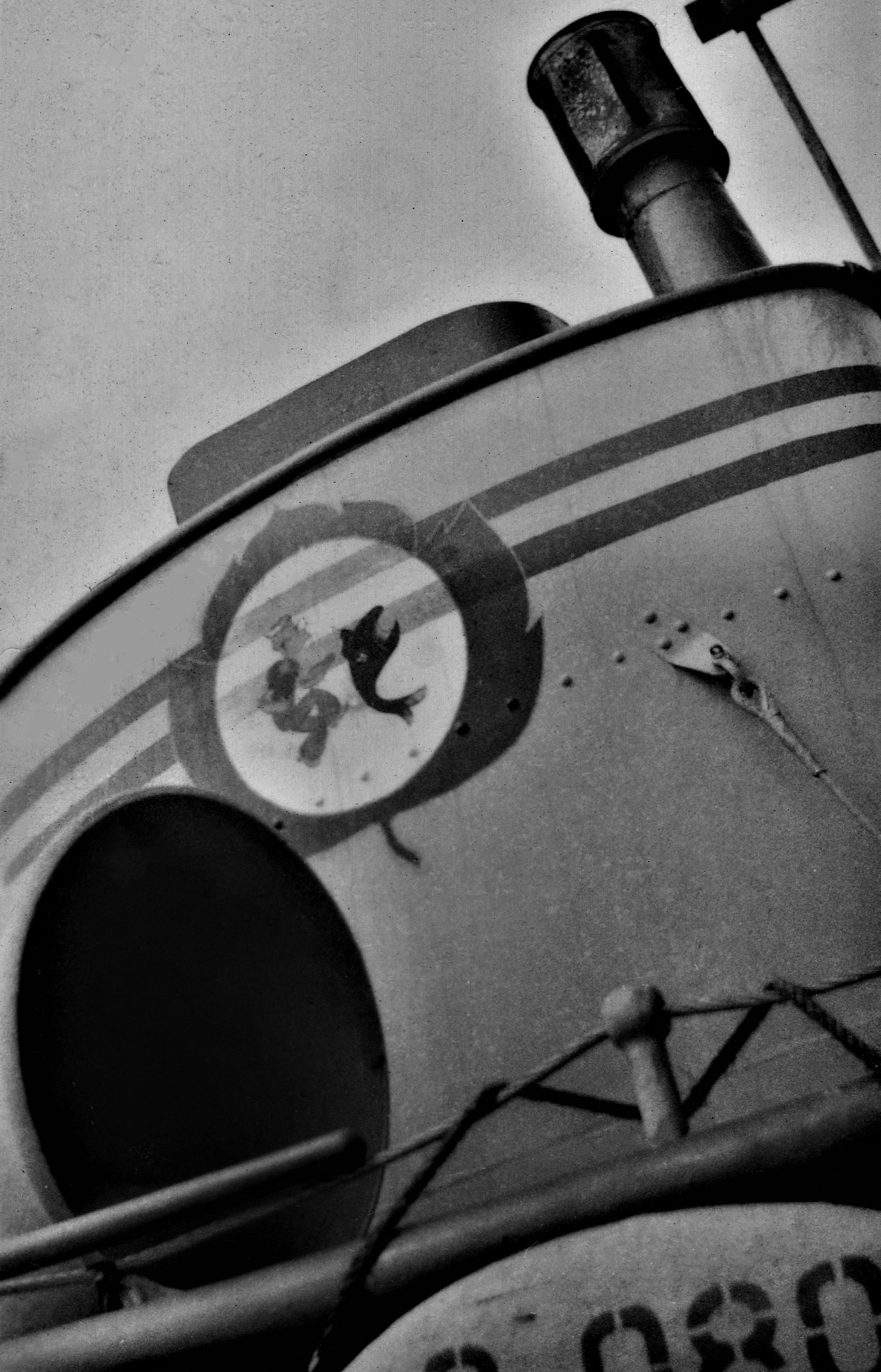 (GS01) ML Q080 (GS02) ML Q080 iced up - showing winter conditions in the Gulf of St. Lawrence (GS02) Funnel art on ML Q080 - Popeye kicking a U-boat (GS03) (GS04) Crew of ML Q080. CPO Sterne, front row, 3rd from right