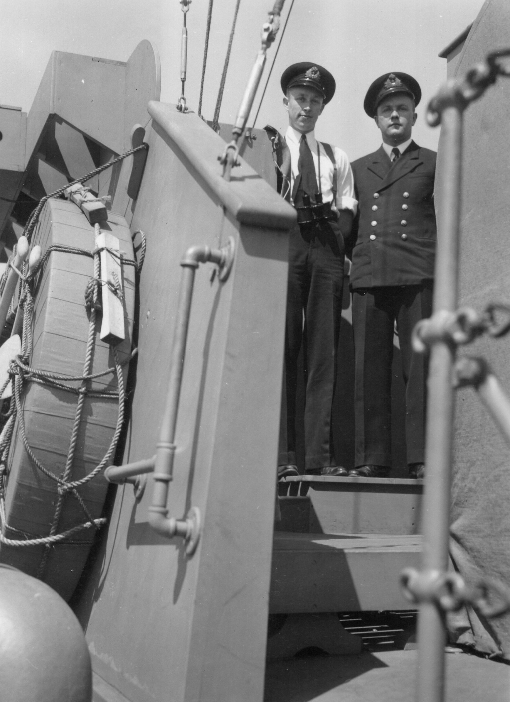 STERNE, George Beatty - was the son of William H.S. and Ethel Sterne. He was born in Ontario but grew up in Edmonton, AB. Prior to the Second World War, George served 3 years in the Edmonton Police Department. After his time in the Navy, George he moved to Burnaby, BC where he took up sports car driving. The ashes for George and his wife Lydia were scattered at sea off Deep Bay, BC.