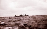 (DB07) Canso flying over convoy (DB08) Convoy to England. Unknown merchant ship seen from SASKATOON'S after gun tub (DB09) USN LST-1005 in convoy (DB10) Unknown merchant ship in convoy (DB11) Unknown sailor on HMCS SASKATOON K158 with merchant ship in convoy in the background