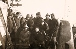 (AW24-AW25) Group photo - sailors on the quarterdeck of HMCS FENNEL K194 (AW26) Sailors with various implements for chipping ice posing for a photo on HMCS FENNEL K194 (AW27-AW28) Sailors on the fo'c's'le of HMCS FENNEL K194 during a stern fueling while in convoy