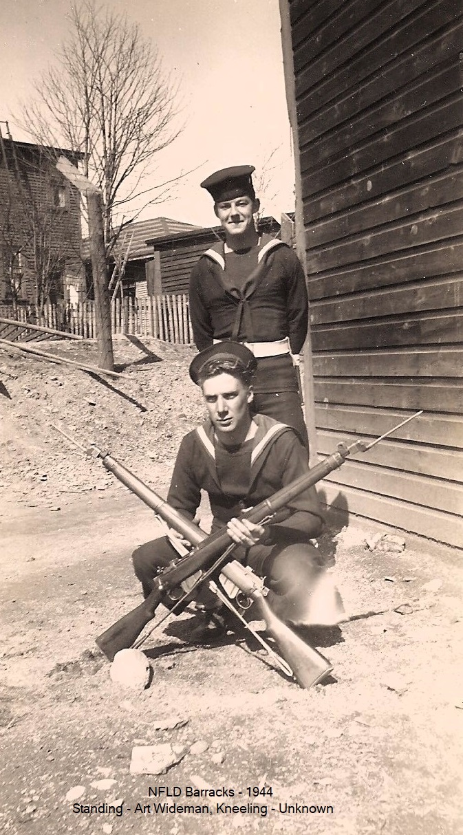 (AW02) Gordon Woods (left) and Art Wideman at HMCS AVALON - 1944 (AW03) Art Wideman (standing), other sailor unknown at HMCS AVALON (AW04) 2 unknown sailors at HMCS AVALON